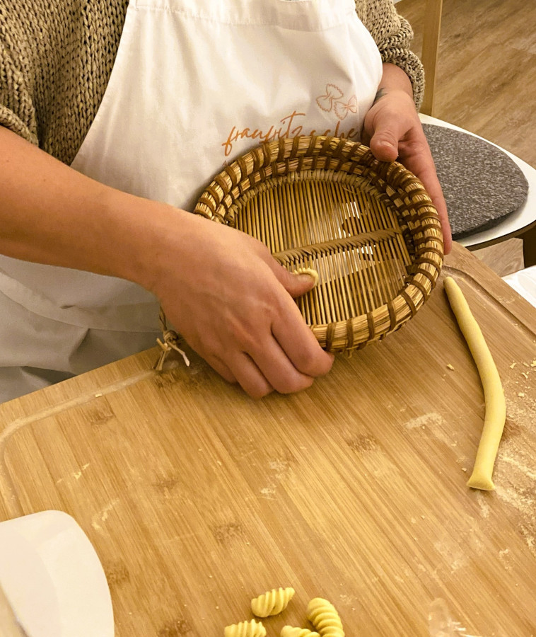 fraufritzsche bringt Dir das Wissen und die Handwerkskunst direkt aus den Ursprungsorten mit: aus Pula, wo in der Nähe Malloreddus und Spizzulus geboren wurden, aus Morgongiori, der Heimat der kunstvollen Lorighittas, und aus vielen weiteren Dörfern, in denen sie den Frauen beim Pastamachen über die Schulter schauen durfte.
